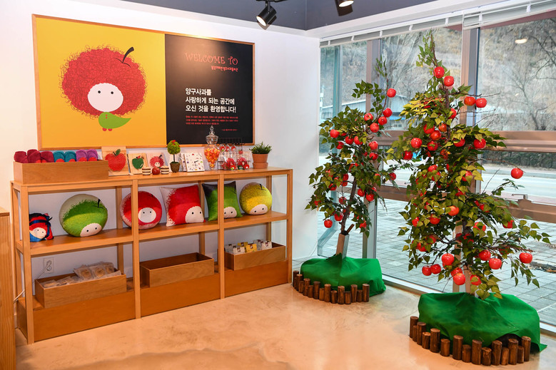 또한 홍보관에서는 양구사과를 테마로 한 ‘빨간머리 사과’ 캐릭터 상품 등도 전시되어 있어 방문객들이 양구사과의 매력을 더욱 다양하게 즐길 수 있다.