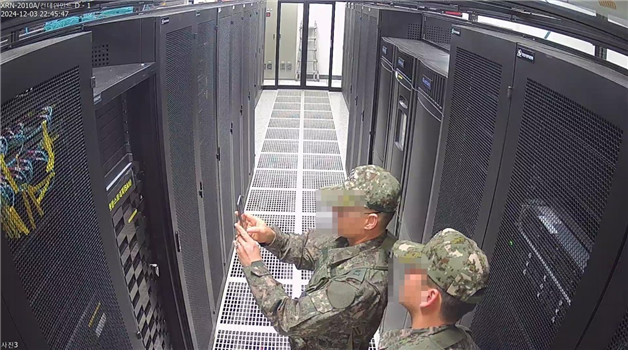 국회 행정안전위원회는 지난해 12월 3일 계엄령 선포 당시 선거관리위원회에 투입된 계엄군이 선관위 시스템 서버를 촬영하는 장면이 담긴 CCTV를 12월 6일 공개했다. 2024.12.6 [행정안전위원회 제공]