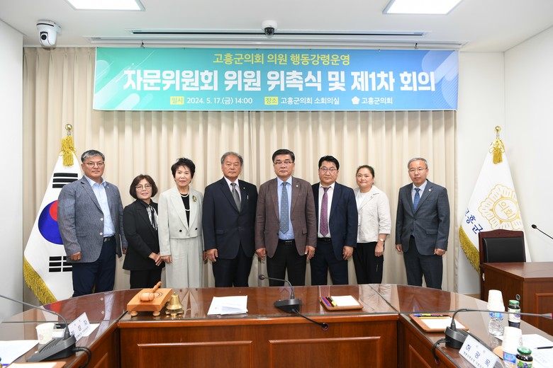 [고흥군 세계타임즈=우덕현 기자] 고흥군의회(의장 이재학)는 17일 ‘고흥군의회 행동강령운영 자문위원회’ 위원 위촉식을 하고 제1차 회의를 열었다.