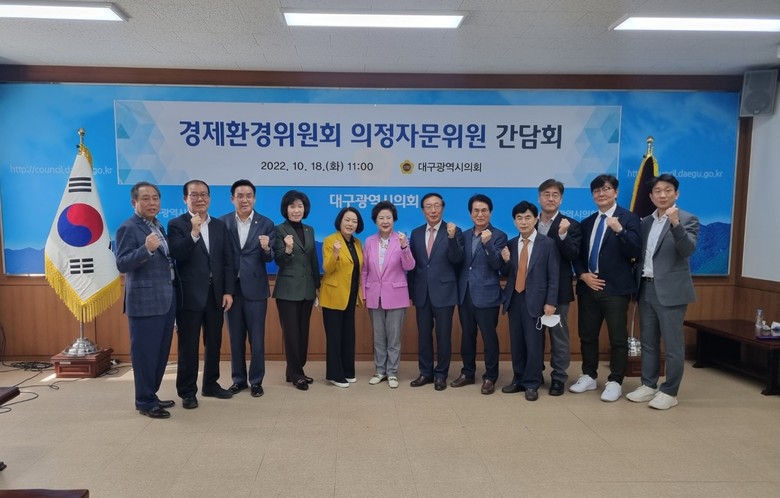 [대구 세계타임즈=한성국 기자] 대구광역시의회 경제환경위원회(위원장 이태손)는 행정사무감사와 내년도 예산심사를 앞두고 10월 18일(화) 11시 대구시의회에서 경제‧산업‧환경분야 등 외부전문가로 구성된 의정자문위원과 간담회를 개최하여 시정의 주요 현안에 대한 전문가 의견을 청취하고 함께 토론하는 시간을 가졌다.