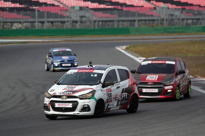 [사진설명] 지젤 킴(299번)이 14일 전라남도 영암군의 코리아인터내셔널서킷(KIC)에서 열린 2018 엑스타 슈퍼챌린지 슈퍼스파크 클래스 결승에서 챔피언을 향해 질주하고 있다.
