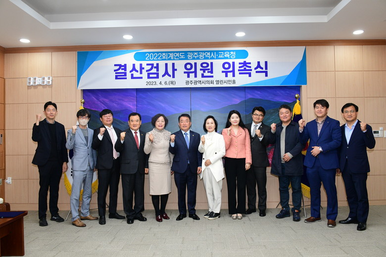 [광주 세계타임즈=손권일 기자] 광주광역시의회(의장 정무창)는 4월 6일 시의회 열린시민홀에서 광주시와 시교육청에 대한 2022회계연도 결산검사위원 위촉식을 개최했다.