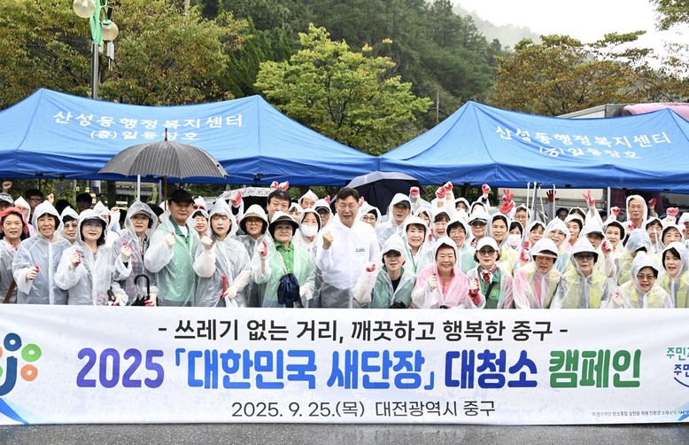 [중구 세계타임즈=이채봉 기자] 대전 중구(구청장 김제선)는 25일 언고개 주차장 및 침산동 일원에서 중구청 직원, 주민, 동 자생단체 회원 등 150여명이 참여한 가운데「대한민국 새단장」 대청소 캠페인을 실시했다고 밝혔다.