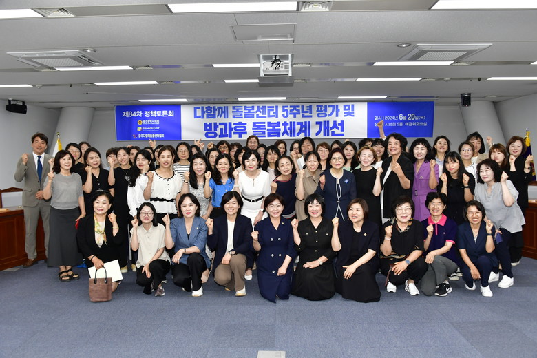 이날 발제자인 양윤이 전 전국다함께돌봄센터협회장은 지난 5년간의 다함께돌봄센터 운영현황을 평가하고 발전방향을 제시했다. 양 회장은 방과후 돌봄정책의 확대 및 강화를 통해 돌봄 사각지대를 해소하고, 질 높은 돌봄서비스를 제공할 필요가 있음을 강조했다. 또한, 돌봄서비스의 질적 향상을 위한 종사자 처우개선 및 전문성 강화를 제안했다.