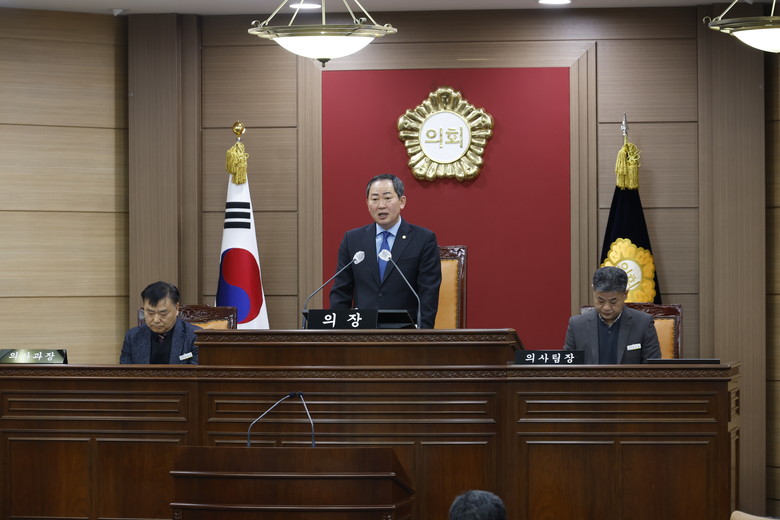장종민 의장은 개회사에서 “매서운 추위만큼이나 경제도 얼어붙어, 군민들이 많은 어려움을 겪고 있으나, 추운 겨울이 지나면 반드시 봄이 오는 자연의 이치처럼, 군민 모두가 힘을 모으고 협력하여 이 난관을 극복하리라 믿으며, 이번 임시회가 군민의 일상에 온기를 되찾고 희망을 더 하는 뜻깊은 시간이 되기를 기대한다”라고 말했다.