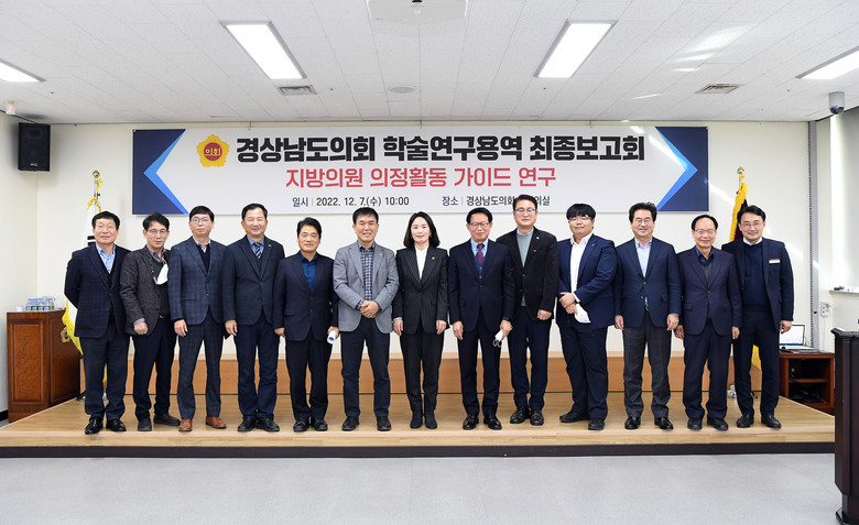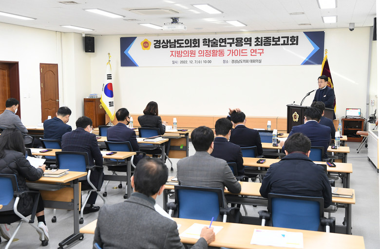 경남도의회는 의회운영위원회 소속 의원, 의회사무처장, 전 담당관·수석전문위원, 정책지원관 등이 참여한 가운데 7일 도의회 대회의실에서 「지방의원 의정활동 가이드 연구」 최종 보고회를 개최하였다.