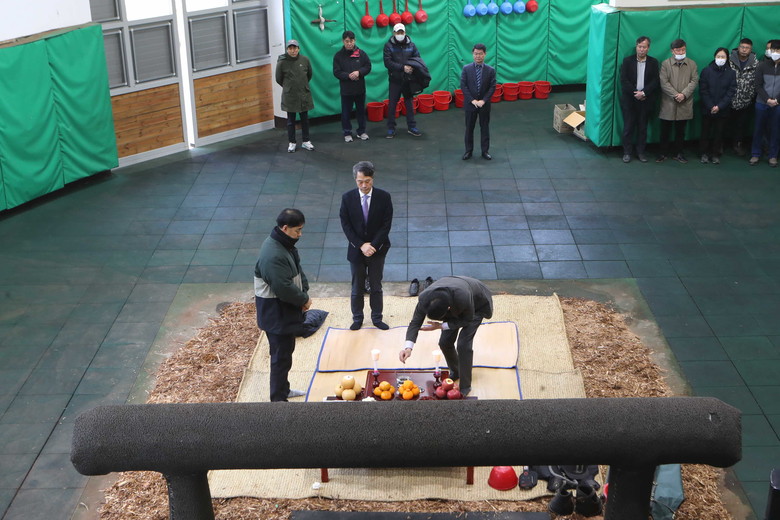 한국마사회(회장 정기환)는 올해 2월 15일부터 6월 30일까지 민간 농가를 대상으로 씨수말 교배 지원에 나선다. 본격적인 교배 시작에 앞서 지난 15일 ‘입춘대길 건양다경(立春大吉 建陽多慶 : 봄이 시작되니 경사스러운 일이 많이 생기기를 기원한다)’의 마음으로 올 한해 성공적이고 안전한 교배와 건강한 자마들의 탄생을 기원하는 무사고 기원제를 지냈다.