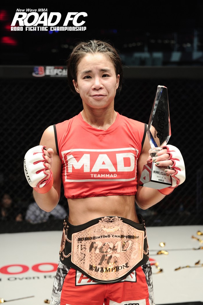 함서희는 팬들의 기대치를 충족했다. 3라운드에 상대를 펀치로 제압, ROAD FC 여성부 최초 챔피언에 등극했다. 함서희에 맞서 쿠로베 미나도 최선을 다했지만, 쉴 새 없이 터지는 펀치에 승리를 내줄 수 없었다.