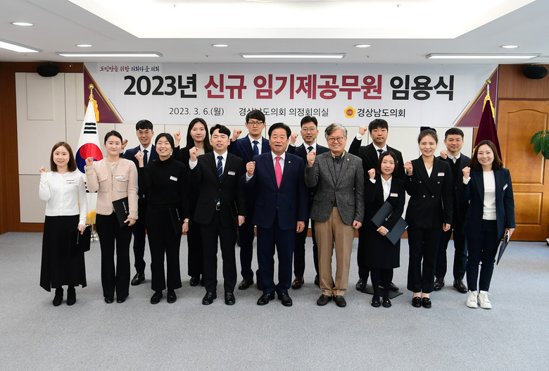 [경남 세계타임즈=최성룡 기자] 경상남도의회 김진부 의장은 의정 정책지원 강화를 위해 6일 의정회의실에서 정책지원관 11명 등 신규 임기제공무원 13명에 대한 임용장을 수여하였다