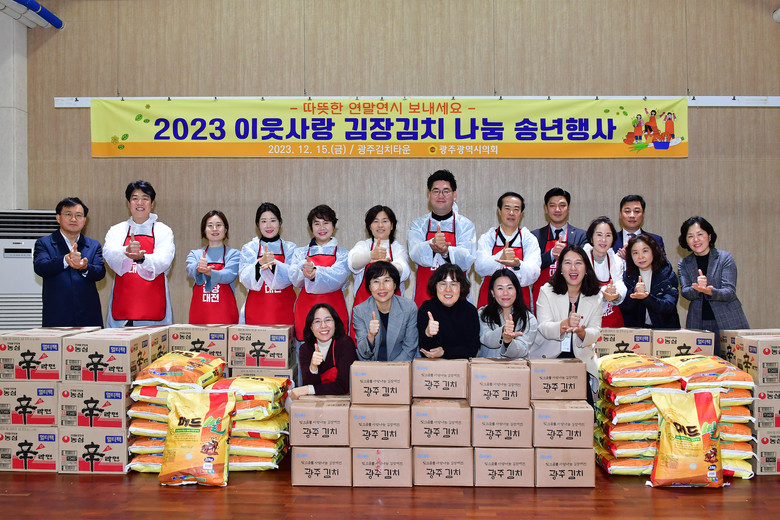 [광주 세계타임즈=손권일 기자] 광주광역시의회(의장 정무창)는 지난 15일 김치타운 다목적체험관에서 ‘이웃사랑 김장김치 나눔 송년 행사’를 개최했다.
