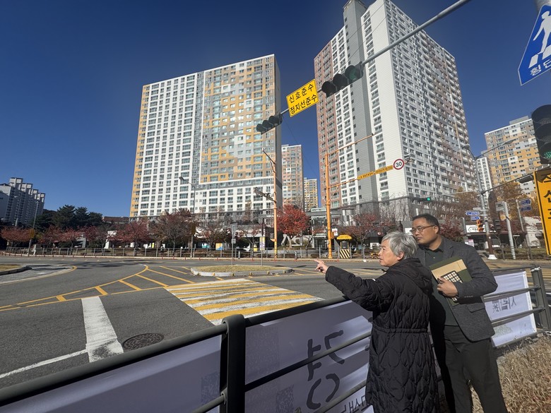 윤경선 의원은 현장에서 신호체계와 차량 흐름을 직접 확인한 뒤, 신호등 각도·높이 조정, 신호 전환 시간 개선, 정지선 재배치 등 즉각적인 조치가 필요하다고 지적했다.