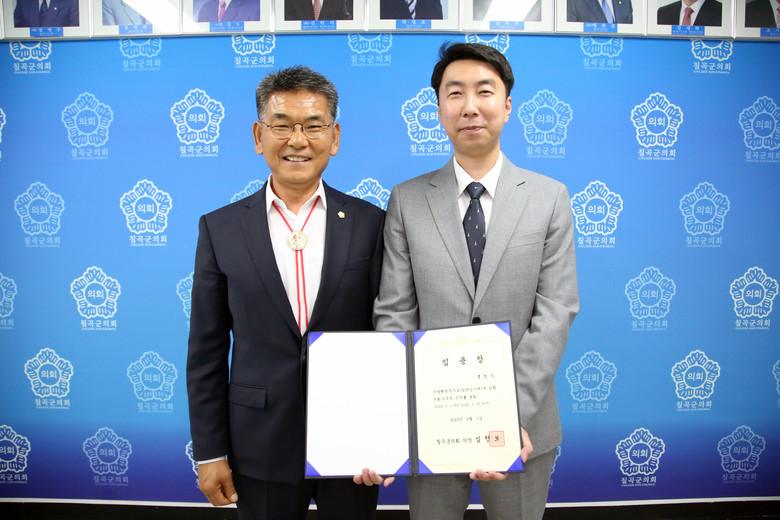 [칠곡군 세계타임즈=한성국 기자] 칠곡군의회(의장 심청보)는 6월 1일(목), 의장실에서 정책지원관에게 신규임용장을 수여했다.