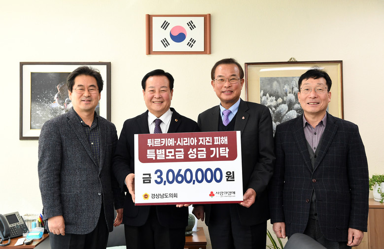[경남 세계타임즈=최성룡 기자] 경남도의회는 지난 6일 튀르키예와 시리아에서 발생한 대규모 지진으로 어려움을 겪고 있는 이재민을 돕기 위한 성금을 전달했다.