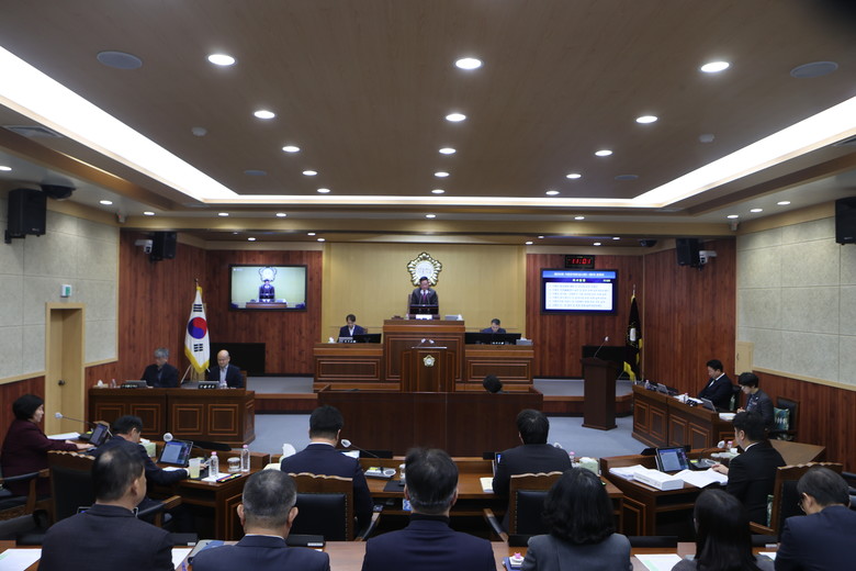 오늘 제8차 본회의에서는 의원발의 조례·규칙안 5건과 집행부에서 제출한 안건 6건 등 총 11건을 심사하고 의결하였다. 특히 이번 임시회에서는 2026년도 군정 주요업무계획 청취를 통해 올 한 해 군정 주요사업을 종합적으로 점검하고, 합리적인 대안을 제시하는 등 군정 발전을 모색하는 시간을 가졌다.