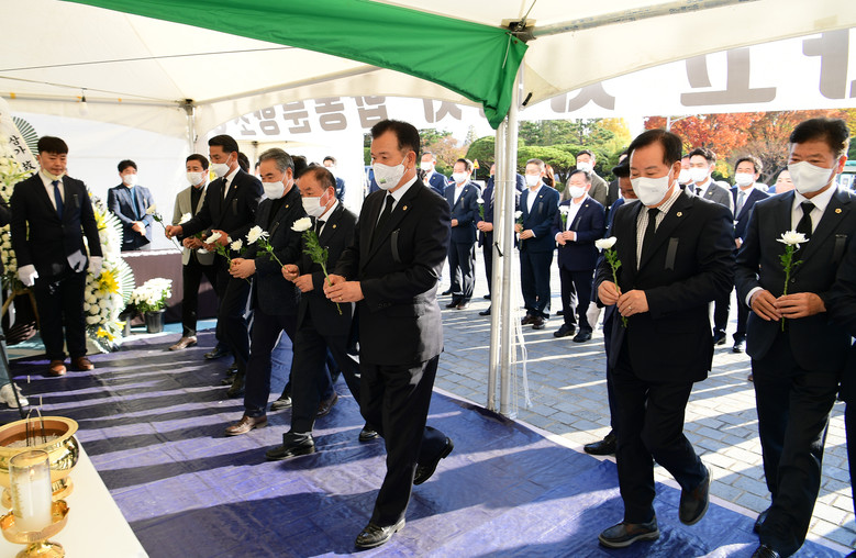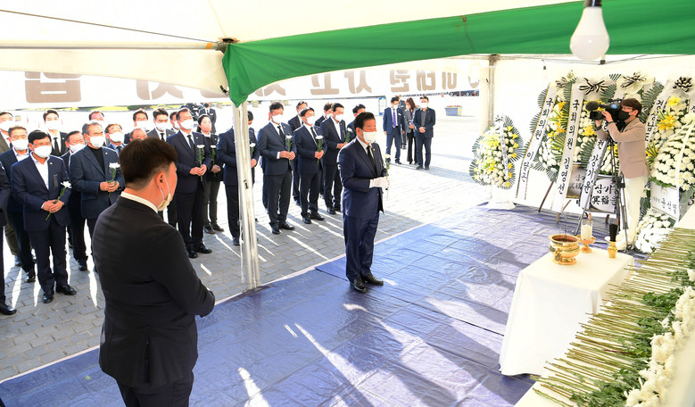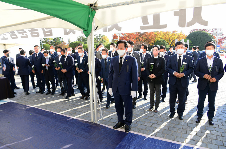 도청 앞마당에 설치된 합동분향소는 11월 5일까지 운영되며 오전 8시부터 밤 10시까지 누구든지 분향할 수 있다.
