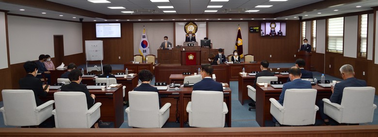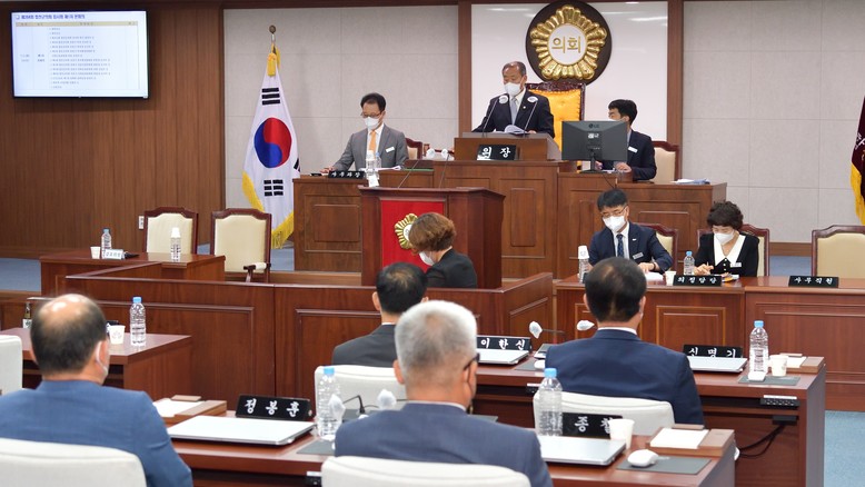 이날 개의된 제1차 본회의에서 선거 결과, 전반기 의장에 조삼술의원(나선거구, 국민의힘), 부의장에 성종태의원(라선거구,국민의힘), 의회운영위원장에 이태련의원(비례대표,국민의힘), 복지행정위원장에 신경자의원(라선거구,더불어민주당), 산업건설위원장에 이한신의원(가선거구,무소속)이 선출됐다.