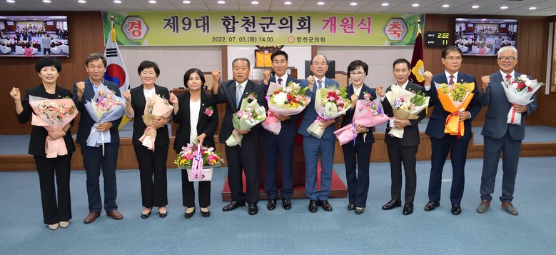 개원식에는 김윤철 합천군수를 비롯한 군 집행부 공무원과 의회 입성을 축하하는 의원 가족 등 각계에서 60여 명이 참석해 제9대 개원을 축하했다.