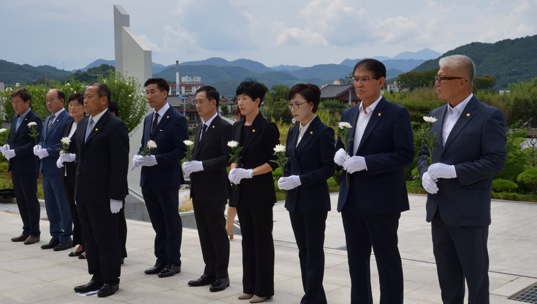 새출발을 응원하는 김윤철군수의 축사와 함께, 개원식을 마친 의원들은 충혼탑을 참배하고 제9대 의회의 열정적인 의정활동을 다짐했다.