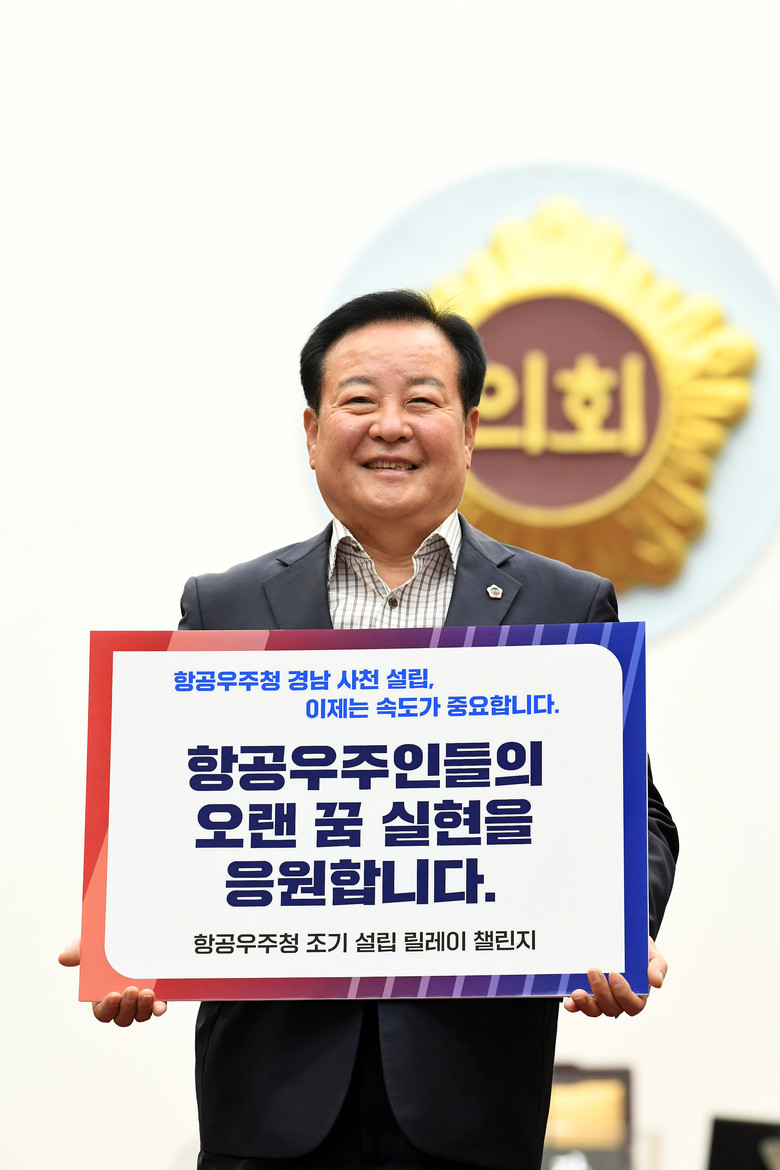 강용범 부의장은 경남 사천에 항공우주청을 조기 설립을 촉구하는 피켓을 들고 찍은 사진을 SNS에 올리면서 공감대 형성을 위한 챌린지에 동참했다.