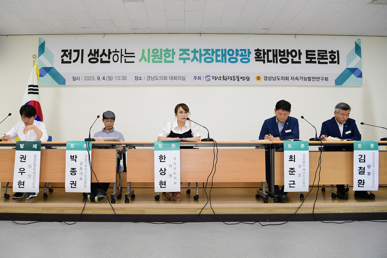 토론회에서는 △주차장 태양광 잠재량 평가보고서의 의미와 확대방안 제안 △주차장 태양광 왜 필요한가 △경남교육청 주차장 태양광 확대 추진 계획과 선결과제 등 다양한 의견이 오갔다.