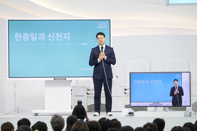 | ▲ 난 6일 오전 신천지 영등포교회에서 현충일 행사가 진행된 가운데 신천지 바돌로매지파 내무부 서규민 부장이 강의하고 있다. [사진 제공 = 신천지 바돌로매지파] |