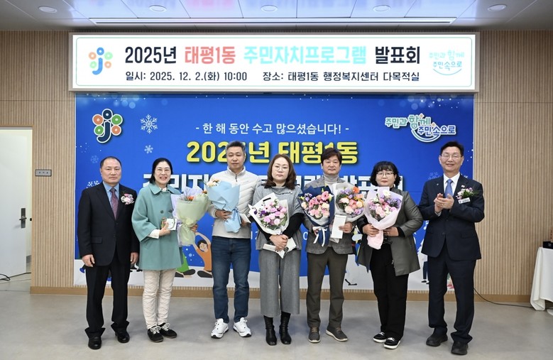 같은 날, 태평1동 주민자치위원회는 평소 남다른 봉사 정신과 이웃사랑 실천으로 타의 모범이 되는 동민을 선발하여 사회·효행·자원봉사 부문 등 총 3개 부문, 4명에게‘2025년 자랑스런 동민 표창’을 수여했다.