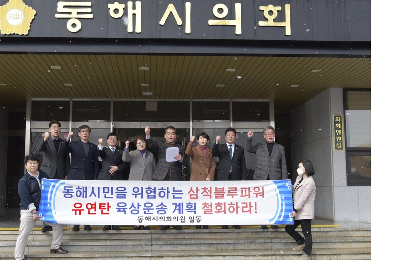 [동해시 세계타임즈=김민석 기자] 동해시의회 의원 일동은 2월 14일(화) 14:00, 삼척블루파워의 유연탄육상운송계획을 반대하는 성명문을 발표하고 계획을 전면 취소할 것을 요구하였다.