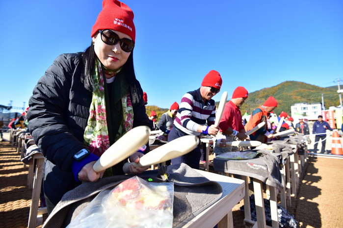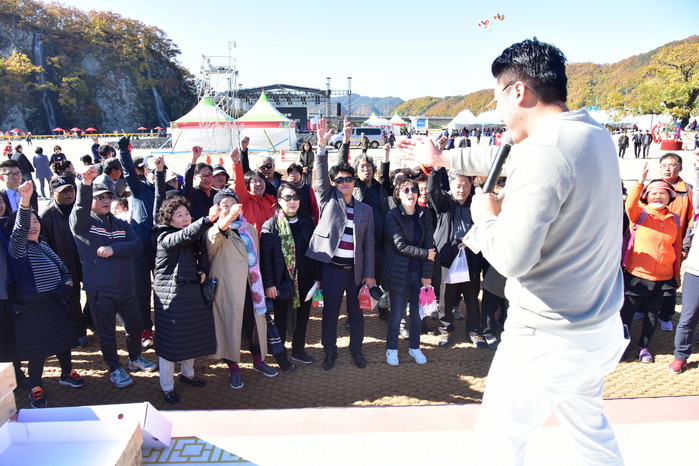 ▲ 사과축제 성공을 위한 군청간부들 화이팅
