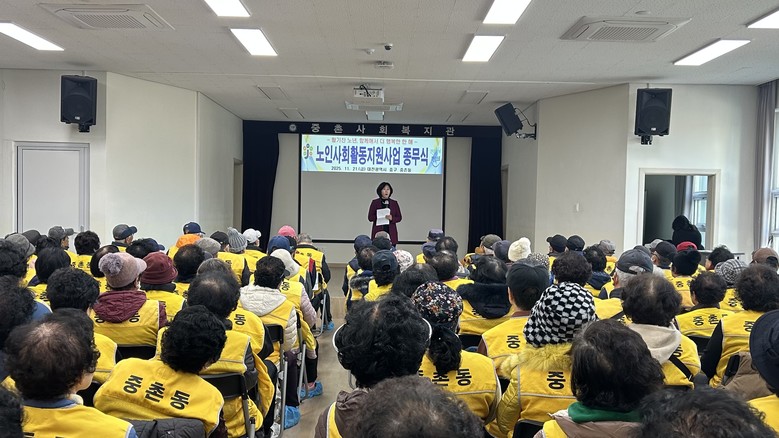 [중구 세계타임즈=송민수 기자] 대전 중구 중촌동(동장 김효숙)은 지난 21일 중촌사회복지관 대강당에서 노인사회활동지원사업에 참여한 어르신 135명을 대상으로 종무식을 개최했다고 밝혔다.