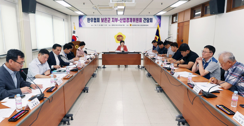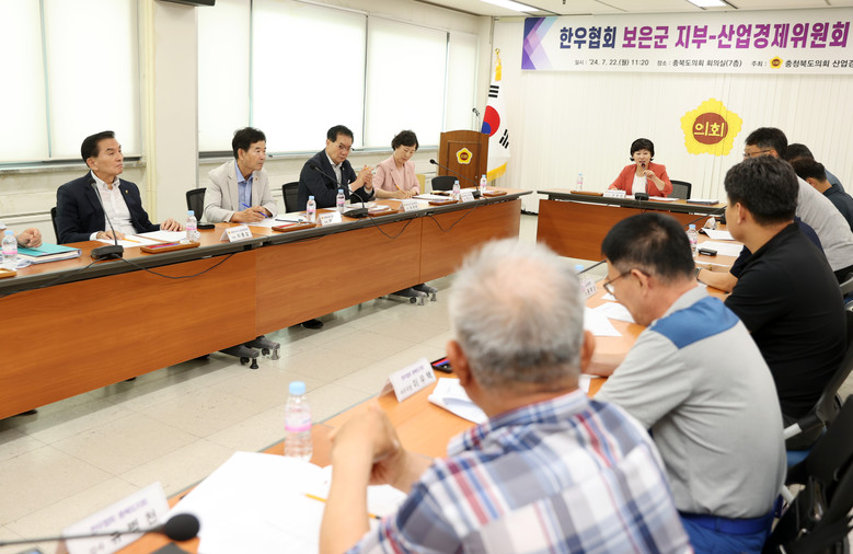 이날 간담회에는 김꽃임 산업경제위원장을 비롯해 박경숙·유재목·이의영·이종갑 위원, 한우협회 안동현 보은군 지부장과 한우협회 회원, 축산신문 최종인 국장, 충청북도 관계 공무원 등이 참석했다.