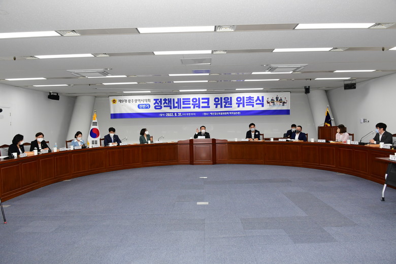 [광주 세계타임즈=손권일 기자] 광주광역시의회(의장 정무창)는 31일(수), 시의회 5층 예결위회의실에서 ‘제9대 광주광역시의회 전반기 정책네트워크 위원 위촉식’을 개최했다고 밝혔다.