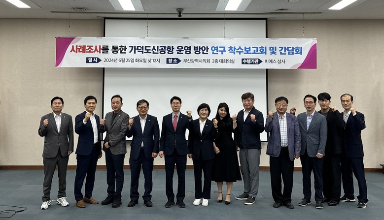 [부산 세계타임즈=이용우 기자] 부산광역시의회 의원연구단체 ‘가덕도신공항 추진 연구모임’은 25일 오후 12시, 부산광역시의회 대회의실에서 ‘사례조사를 통한 가덕도신공항 운영방안’ 연구 용역에 대한 착수보고회와 간담회를 개최하였다.