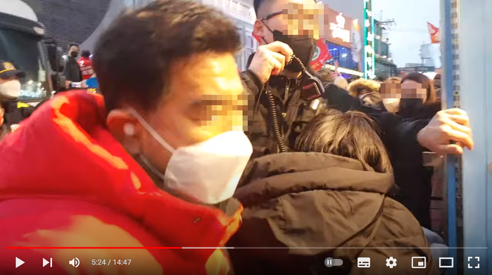 그 현장에서 윤후보를 지지하는 빨간 목도리의 당원들 및 검은 마스크의 사람으로부터 밀쳐지고 , 목이 조이고 넘어진 학생을 다시 들어 던지는 등의 폭력 적인 선거유세장이 시민들에게 보여졌다.