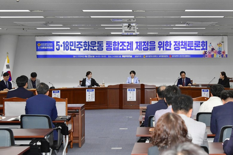 이날 토론회는 명진 5·18특별위원회 부위원장이 좌장을 맡았으며, 정다은 위원장이 ‘통합조례안의 주요내용과 기대효과’를 주제로 발제에 나서 조례정비에 나서게 된 배경과 문제점, 당위성, 추진경과, 기대효과 등을 소개했다.