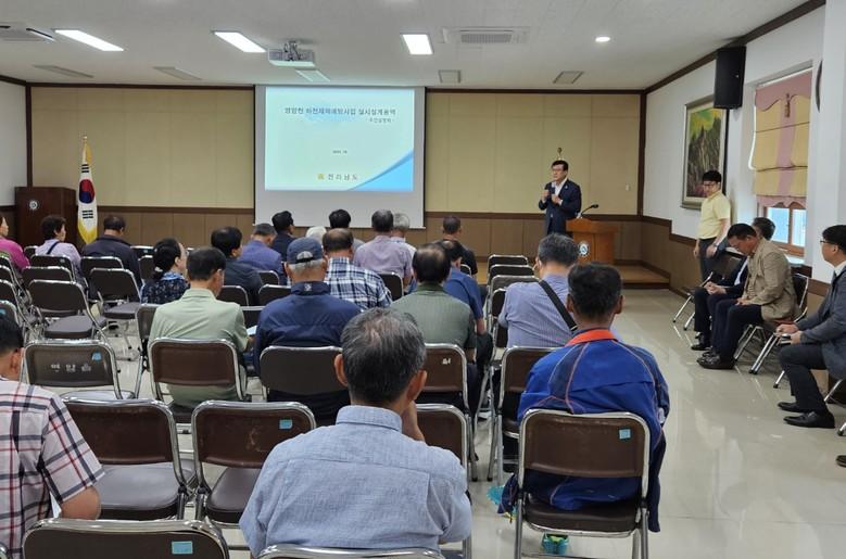 이날 설명회는 신승철 도의원을 비롯해 전남도 자연재난과 및 영암군 관계 공무원, 지역주민 등 50여 명이 참석한 가운데 주요 사업내용과 향후 과업 추진계획 을 설명하고 의견수렴의 시간을 가졌다.