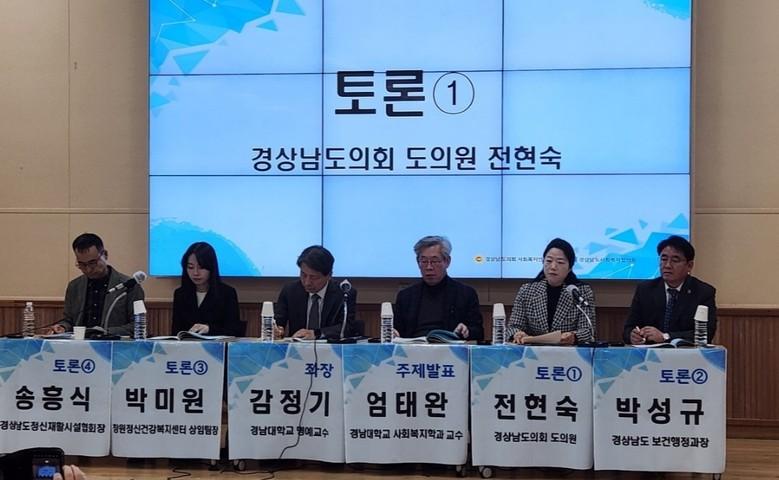 토론회에는 경남대학교 엄태완 교수와 감정기 교수가 각각 주제 발표와 좌장을 맡았으며, 경상남도의회 전현숙 의원을 비롯한 각계 전문가들이 토론자로 참여하여 열띤 논의를 이어갔다.