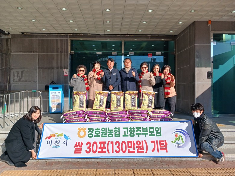 송영환 장호원농협 조합장과 이수연 고향주부모임 회장은 “회원들이 육묘장 모판 세척과 복숭아축제 떡 판매 등 자발적인 봉사활동을 통해 장학금과 불우이웃돕기 기금을 마련해 왔다”라며 “그 수익금으로 준비한 이번 이천쌀이 추운 겨울을 보내는 이웃들에게 작은 도움이 되길 바란다”라고 전했다.