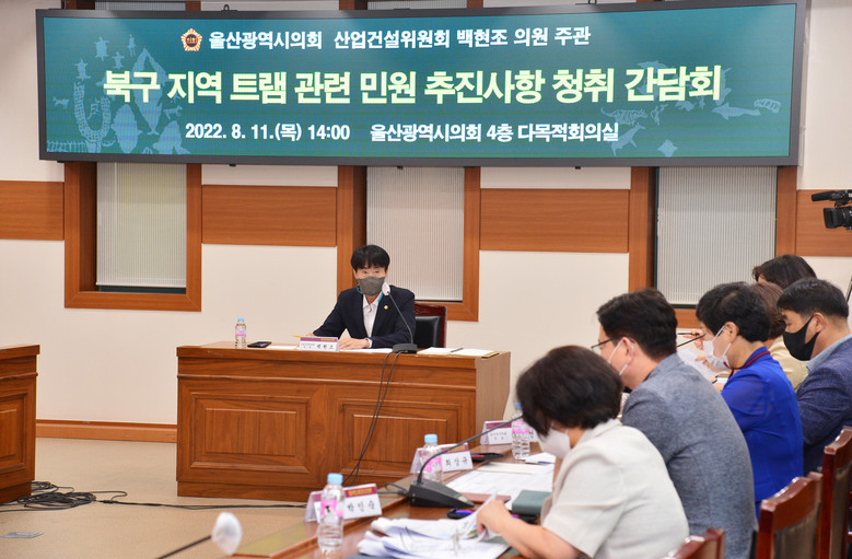 [울산 세계타임즈=이호근 기자] 울산광역시의회 백현조 의원(산업건설위원회)은 11일 오후 2시 시의회 4층 다목적회의실에서 ‘북구 지역 트램 관련 민원 추진사항 청취 간담회’를 개최했다.