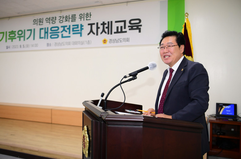 [경남 세계타임즈=최성룡 기자] 허용복 도의원(양산 6, 국민의힘)은 5일 오후 경남도의회 대회의실에서 “경남의 기후위기 대응전략에 관한 자체교육”을 주관하며 도의원과 의회 직원들을 상대로 기후위기의 심각성과 경각심을 알리며 앞으로의 정책적 변화를 촉구해 눈길을 끌었다.