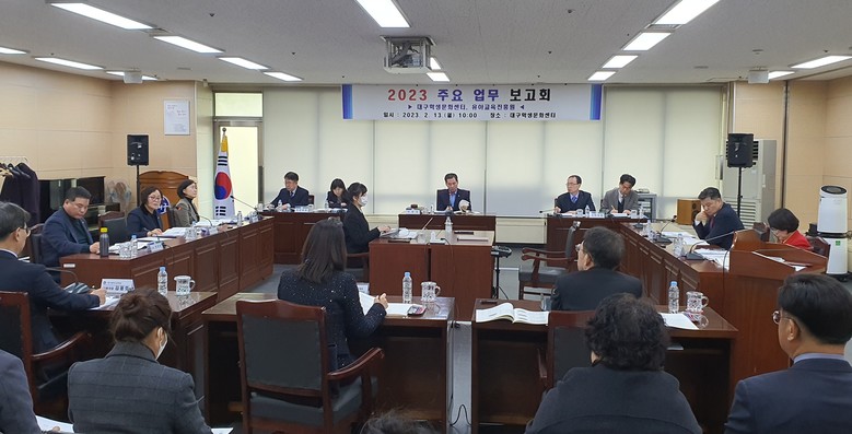[대구 세계타임즈=한성국 기자] 대구시의회 교육위원회(위원장 이동욱)는 지난주 8일(수)과 9일(목) 대구시교육청과 교육지원청 등 7개 기관에 이어 13일(월) 대구학생문화센터 등 5개 기관, 14일(화) 대구교육해양수련원 등 12개 기관의 2023년 주요업무 추진계획을 보고 받고, 올 한 해 대구교육이 한 단계 도약하고 학생들에게 보다 질높은 교육서비스를 제공할 수 있도록 적극 노력해 줄 것을 당부했다.