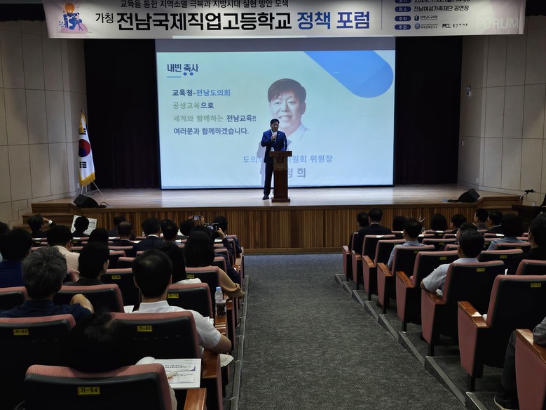 [전남 세계타임즈=우덕현 기자] 전라남도의회 교육위원장 김정희 의원(더불어민주당ㆍ순천3)이 7월 22일, 전남여성가족재단에서 열린 (가칭)전남국제직업고등학교 정책 포럼에 참석하여 인구소멸 위기 극복을 위한 전남교육청의 노력에 힘을 보탰다.