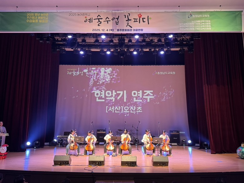 [충남 세계타임즈=송민수 기자] 충남교육청(교육감 김지철)은 12월 4일(목), 홍주문화회관에서 농어촌 지역 학생들의 예술적 성장을 담아낸 ‘2025 농어촌 우리동네 예술학교 수업활동 발표회’를 성황리에 개최했다고 밝혔다.