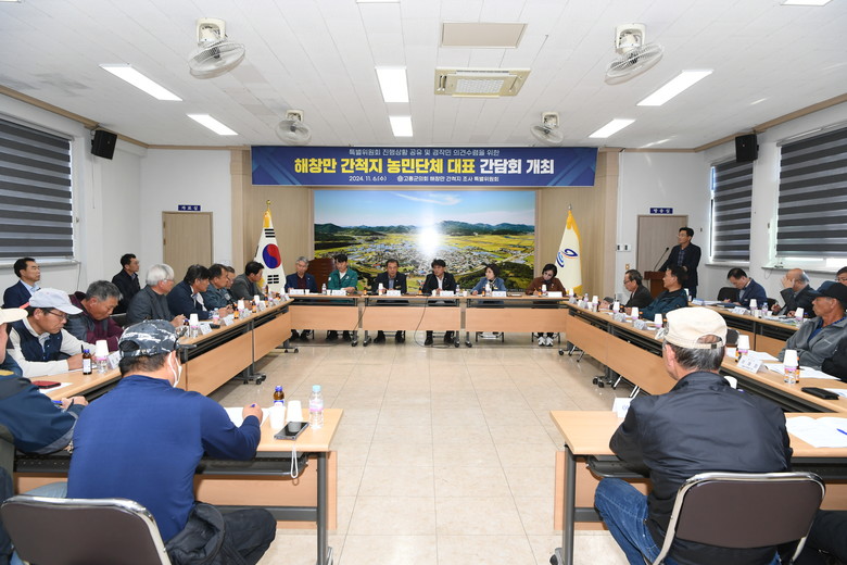 이날 간담회는 포두면 농업경영인회 정종휘 회장을 비롯하여 20여명의 농민단체 대표 등이 참석한 가운데 △ 특별위원회 출범 취지 및 경과 안내 △ 해창만 간척지 현황 설명 △ 해창만 간척지 현 실태에 따른 대응 방안을 공유하고 이에 대한 심도 있는 질의응답 및 열띤 토론의 시간을 가졌다.