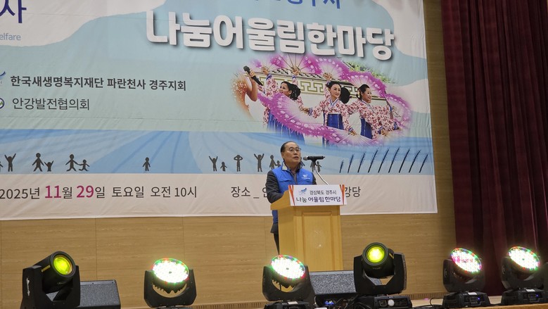 [세계타임즈]최성룡기자 = 2025년 11월 29일 토요일, 경주시지회가 주최한 ‘나눔어울림한마당’ 행사가 안강제일초등학교 강당에서 따뜻하게 열렸다. 이번 행사는 지역 어르신들에게 문화와 휴식을 제공하기 위해 마련된 뜻깊은 자리였으며, 파란천사의 나눔 정신이 현장에서 아름답게 실천된 하루였다.