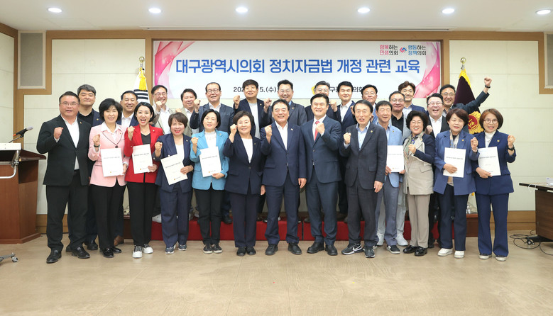 [대구 세계타임즈=한윤석 기자] 대구시의회(의장 이만규)는 6월 5일(수) 16:00 시의회 3층 회의실에서 대구시의원 전원을 대상으로 7월 1일부터 시행되는 지방의회의원 후원회 도입 관련 ‘정치자금법 개정 관련 교육’을 실시했다.