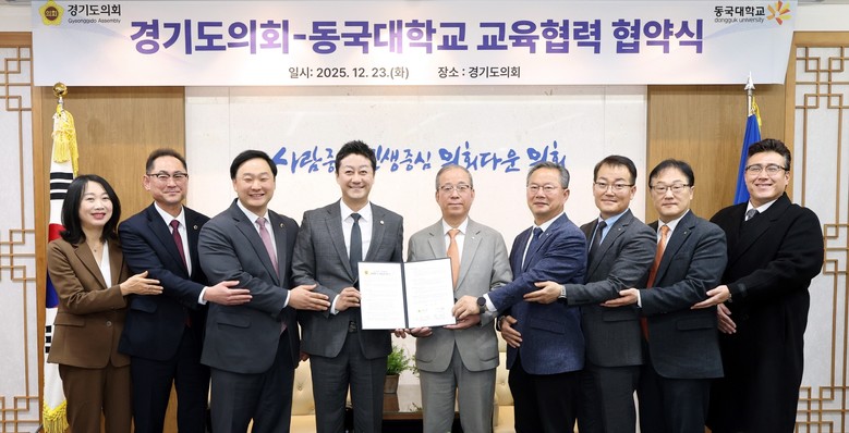 김진경 의장은 “의회에 대한 도민의 기대는 점점 더 복잡해지고 다양화되고 있는 만큼 의회 구성원 모두가 더 많이 배우려는 노력이 필요하다”라며 “경기도의회는 이번 협약으로 동국대학교와 함께 서로를 이끌어 주는 좋은 동반자가 되기를 기대한다”고 밝혔다.