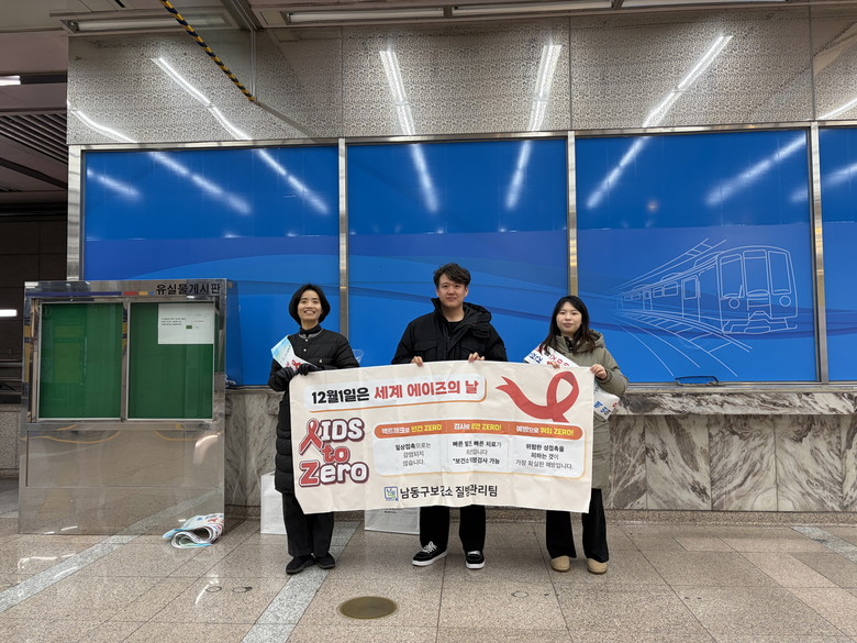 [남동구 세계타임즈=심하린 기자] 인천시 남동구 보건소는 ‘12월 1일 세계 에이즈의 날’을 맞아 에이즈 예방과 인식 개선을 위한 에이즈 예방 홍보 캠페인을 인천지하철 인천시청역사에서 했다고 5일 밝혔다.