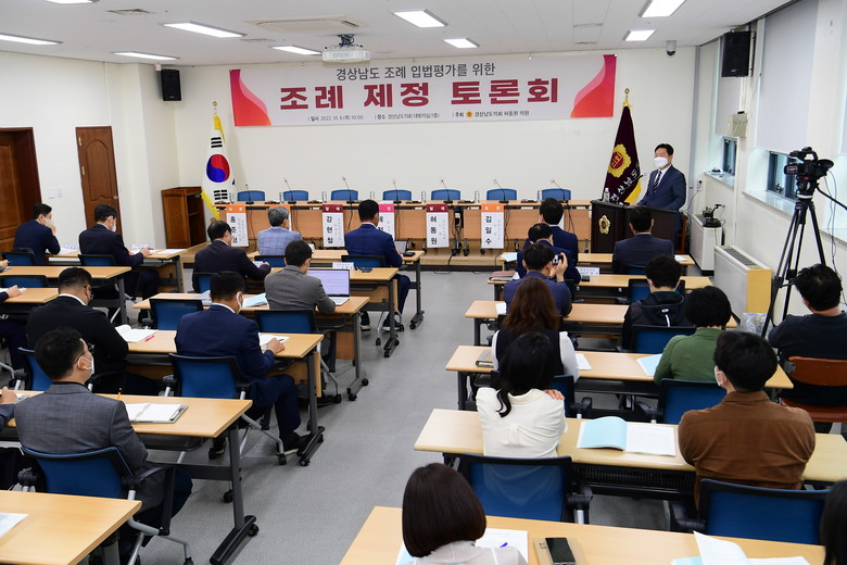 이번 토론회는 입법 및 법률 전문가들이 참여하여 조례 입법과 입법평가의 중요성 및 제정 준비 중인 경상남도 조례안과 관련된 다양한 의견을 논의하기 위해 마련되었으며, 경상남도의회 유튜브채널을 통해 온라인으로도 생중계 되었다.