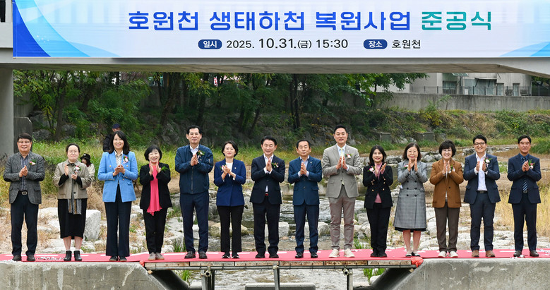 이번 사업은 건천화됐던 호원천을 맑은 물이 흐르는 생태하천으로 복원하기 위해 추진됐으며, 도비 68억 원과 시비 68억 원 등 총 136억 원이 투입됐다.