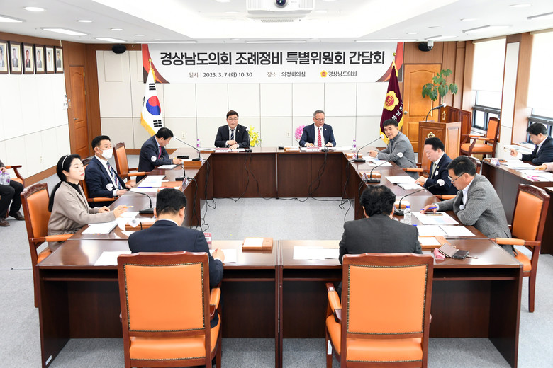 [경남 세계타임즈=최성룡 기자] 경남도의회 조례정비특별위원회(위원장 정규헌)는 7일 오전 도의회 의정회의실에서 간담회를 열고 위원들과 특위 운영방향 설정을 위한 본격적인 논의를 진행했다고 밝혔다.